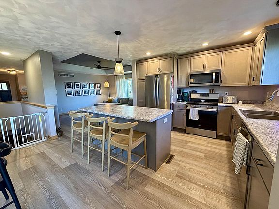 Showings start 10/25. Inviting 2 bed, 2 bath home nestled in a cul-de-sac in the Milton School District. Located in a growing community, this property combines comfort, privacy and thoughtful design. Step inside to find unique touches throughout, creating a warm and welcoming atmosphere. The open layout flows seamlessly from the living space to kitchen, complete with all appliances included. The lower level features an egress window, offering flexibility for additional living space or a future bedroom. Outside, enjoy mature trees and a fully fenced yard, perfect for both relaxation and play. Entertain or unwind by the patio and pool (included!), while the playset adds fun for the whole family. Close to Ice Age trail.