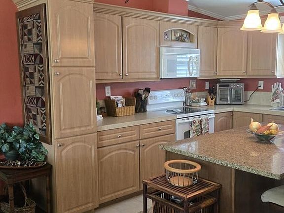 BRAND NEW ROOF & 350 Ft INTEGRAL GARAGE with 15 x 4 built-in work bench & Automatic Door, Craft room complete with shelving, 3 bedrooms & 2 baths, screened in front porch & backs up to wooded State Preserve land. Totally equipped kitchen/dining area. Carpet/laminate floors throughout. 1 block to pool, Driveway fits 2 cars and a golf cart. Resort style 55+ community with 2 clubhouses/heated pools and spas Tennis/Pickleball Courts, shuffleboard, bocce, library Fully equipped gym. You can rent your home (3 month minimum) Land lease includes lawn maintenance and trash pickup. NO TAXES EVER! NO ASSESSMENTS EVER! NO HOA!