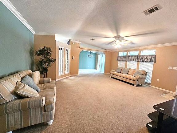 This 3-bedroom, 2-bathroom home offers 1,568 sq. ft. of comfortable living space plus a large 200 sq. ft. screened room, perfect for relaxing or entertaining. Recently updated with a new roof (2022) and a new metal carport roof, this home is move-in ready. Large corner lot. Inside, you'll find a large kitchen with a pantry, ideal for extra storage and meal prep. The AC unit is only 5 years old, ensuring efficiency and comfort. Outside, enjoy the convenience of a double carport and the bonus of a golf cart included. Located in a desirable 55+ community, this home comes partially furnished, making your transition smooth and easy.