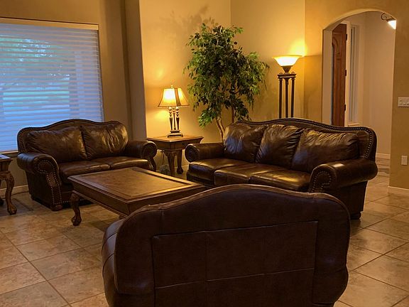Furnished with Premium Furniture- This 3-bedroom, 2-bathroom home located in the Sonoma Ranch Golf Club Community, is sure to please any tenant from the inside to the outside. Full open kitchen with granite countertops, stainless steel appliances, under cabinet lighting and gas stove. The open floor plan offers an abundance of bright light throughout the home. Living room decorated with Leather furniture and smart tv. Fireplace and built-in cabinets along with dining for six is ideal for an evening with guests. The master bedroom is complete with king size bed, dresser, walk in closet, double sinks and jacuzzi tub. The other two bedrooms are furnished with queen size beds. The relaxed living offers desert landscaping, drip system for irrigation and fenced back yard. Outdoor furniture is included . This 2000 sq. ft. home is spread on a quarter acre lot in front of a park in east Sonoma Ranch with direct access to freeways, medical college, area hospitals and businesses. This desirable community is close to area hospitals, schools, gyms, coffee, restaurants, shopping, entertainment, and other medical services. Golf course with Sunset Grill Restaurant located within the community. Owner pays HOA fees and property taxes. Tenant pays all utilities. First months rent and security deposit equal to one month rent is due at signing of the lease. Minimum credit score criteria applies. Non smokers only! Zillow application , credit/background check is required.