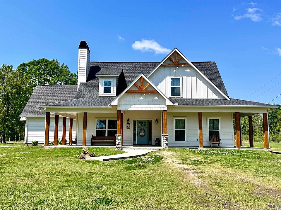 The home you have been waiting for......Acadian Style home on 1.7 Acres in Ascension Parish. Home is in Flood Zone "X" and has never flooded. 4BR/2.5BTH ~ approx. 2,235 sqft living ~ Approx 2 yrs old. Open kitchen/dining/living area with beautiful stone surround wood burning fireplace. Kitchen features stainless steel appliances including gas stove, dishwasher, built-in microwave, granite countertops, pantry and island. Wrap around front/side porch. Huge 17'x40' concrete patio at the rear of the home - great for entertaining. Architectural shingle roof. Quiet country setting - last house on dead end road. **SHOWINGS BY APPOINTMENT ONLY** GRAVEL DRIVE - PLEASE DRIVE SLOW **!!
