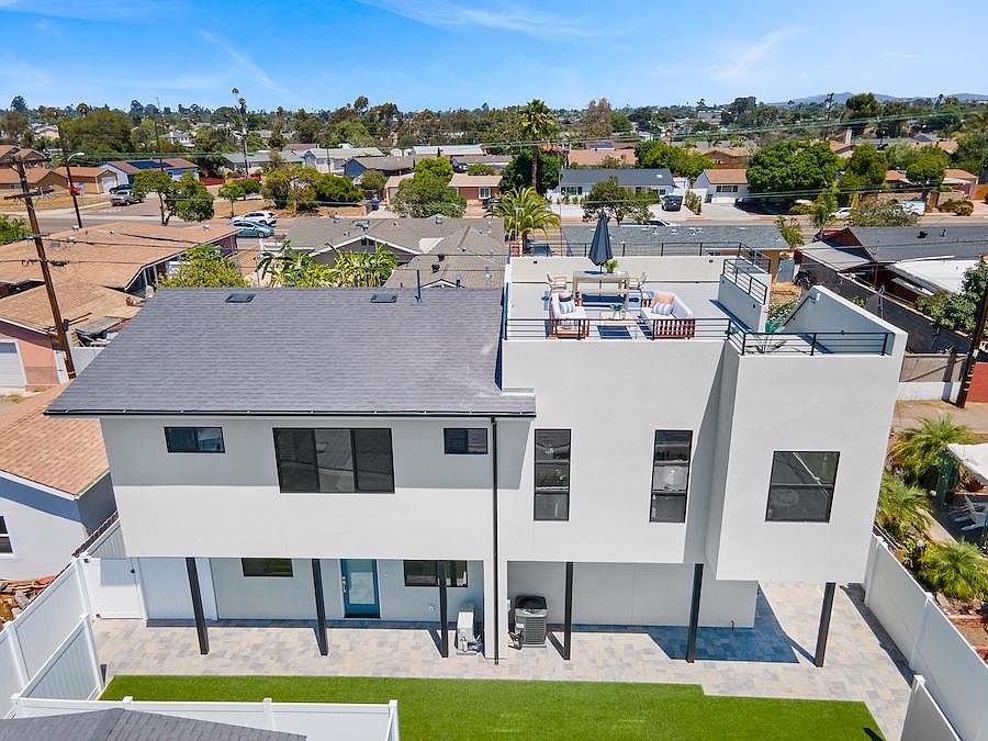 Luxurious 2 years old New Construction in Bay Ho / West Clairemont! One of the nicest & most unique local offerings, this home has barely been lived in! Upstairs 3 bed, 2 bath, 1480 sq ft with 10' ceilings. Oversized 2-car garage on level 1, main living area on level 2, and a 700 sq ft rooftop terrace. There is a small, zero-maintenance backyard. A chef's kitchen perfect for intimate meals or entertaining large groups. Master bedroom suite comes with separate bathroom & walk-in closet. Enjoy 360 degree views from the rooftop deck - views from the Ocean to Mexico and to the Eastern Mountains! Solar Electric included makes for low SDGE bills. 220v outlet in garage for charging your EV. A/C, laundry, recessed lighting, dual pane windows, vinyl plank wood flooring, custom cabinetry and high end appliances are ALL included, even a wine fridge. Must see in person! Centrally located with easy access to freeways, beaches or uptown / downtown. Small Pets considered for additional fee/deposit. Property is UNFURNISHED.