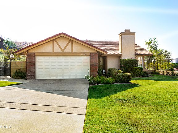 Welcome home to this gorgeous single story view home in the heart of Moorpark. With 3 bedrooms, 2 bathrooms this model is perfect for any buyer. Once you enter you will notice the open floorplan the formal living room and fireplace, dining room and substantial kitchen with updated counters, stainless steel appliances, farm sink, large custom island with plenty of bar seating, custom painted cabinets and tile backsplash. Picturesque backyard has amazing views, spacious side yards, and ample grass area perfect for entertaining. Patio has pergola with plenty of room for outdoor dining and enjoying the sunsets. Amenities include ceramic tile, which resembles wood throughout, recessed lights, newer electrical panel/water heater/furnace and central AC, custom paint, 2-car garage with direct access, and plenty of natural light entering the home. Close to schools, parks and shopping. Come and see this home today!