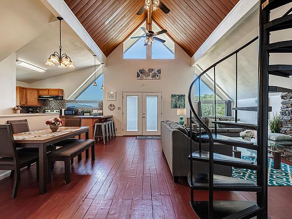 Lewis creek frontageHuge treesEasy to maintain floorsLarge deckPeaceful creek soundsGorgeous high vaulted ceilings