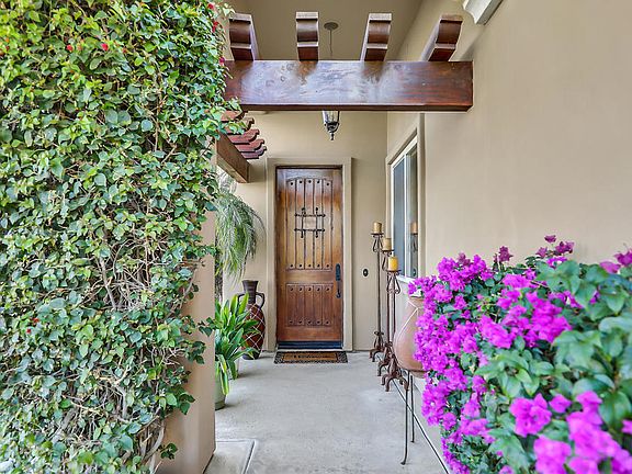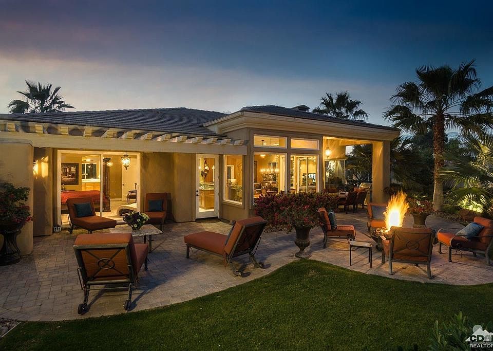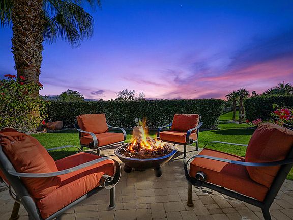 Exceptional value, views and opportunity to own a 3 Bed, 3 Bath home within Bellissimo, a gated enclave of only 51 homes in Bermuda Dunes Country Club!! Attention to detail is evident throughout and begins with the designer entry door/pergola which opens to a true great room with stack stone fireplace and walls of glass for plenty of light and views of the tropical rear patio and mountains. This open and welcoming floor plan is great for relaxing and entertaining with easy access to the private outdoor pavered patio area with BBQ, fire pit, misting system and area for dining. Gourmet kitchen w/island is open to living area with extra seating at counter to visit with the Chef. Texas-sized master suite complete with walk-in closet, separate shower and tub w/travertine surround, even a bidet!! Third bedroom has a built-in murphy bed in closet, so it can also be used as an office - very ingenious! Bathrooms have been remodeled and upgraded... Large two-car garage, with lots of built-ins, plus golf cart garage. HOA of $483 includes two private gates, all gardening (front and rear) & pool/spa area. BD Security HOA of $209 includes cable TV with two boxes with Showtime & HBO and internet with Spectrum, PLUS 24-hour guard gated security.