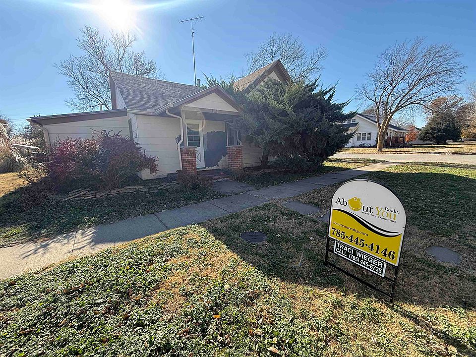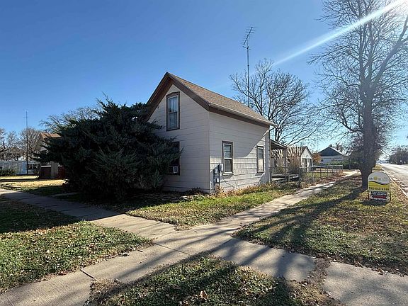Property has tons of potential. Corner lot, double detached garage, and a bonus garden shed, wood floors under carpet and wood floors exposed in upstairs bedroom. Window air. Fenced in yard. Only 6 miles to Wilson Lake~ so perfect property for getaway home or home to fix up. There has been a claim on the roof~ and the roof was not replaced. With a little TLC~ this property could be absolutely adorable. Brick pillars out front are hidden by the tree~ and inside it is larger than it appears. This might be just the property you are looking for. Don`t delay~ call or text Traci Wieger at 785~445~8735 to schedule your tour today...