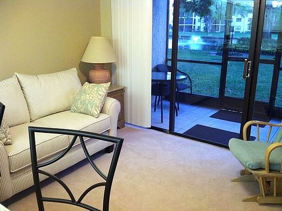 First Floor unit with spectacular view of the pond. Turnkey furnished 2 bedroom 2 bath with covered carport. Central location just short drive to restaurants, pubs, beaches and so much more. Sit on your screened back porch and enjoy the peaceful view of the fountain and pond.Great place to entertain friends out in the Gazebo with deck and grills, tables and chairs over looking the Fountain and pond. Super active community with Fitness, billiards, library, club house. Enjoy some tennis, pickle ball, shuffle board or just relax around the heated pool. Just pack your clothes and come enjoy all that sunny Florida Gulfcoast offers! Only 50 steps away is a storage unit for your bikes, laundry facility and mail boxes all under roof.
