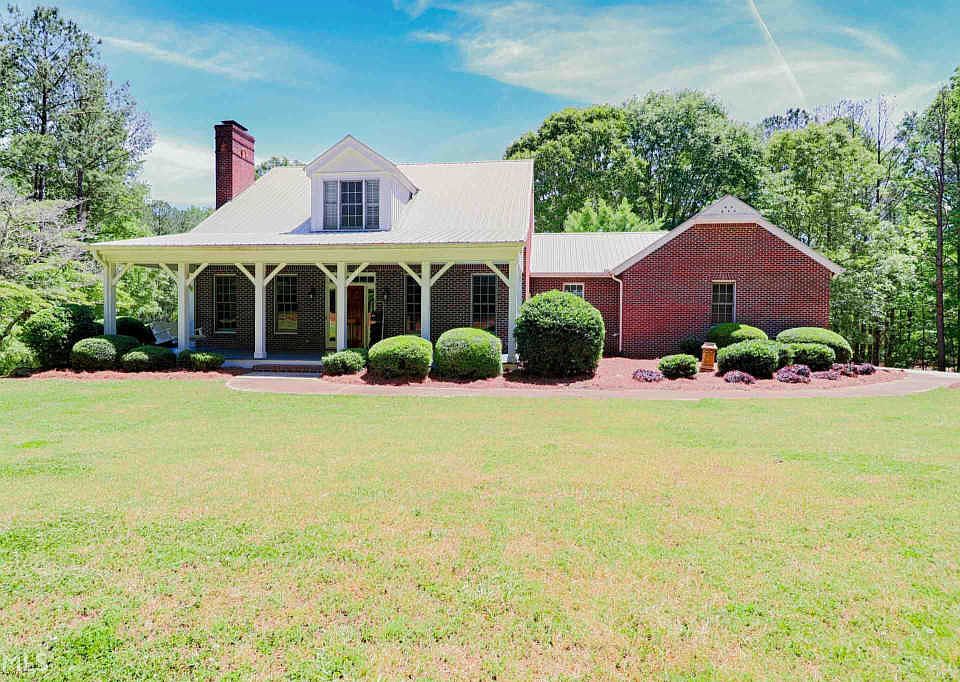 Call agent. Lovely 4 sided brick Cape Cod home with a lake on 34 acres. A must see. This house is 30 Minutes to the Atlanta Airport via Roscoe Rd. to Fulton Industrial Blvd. There are 3 Barnes on the property as well as a shop and a Rustic Cabin. Beautiful views of the fire pit and lake from the screened in porch on the back of the home. Hardwood floors on the main level. The kitchen has quartz countertops and an oversized island. This home has it all.