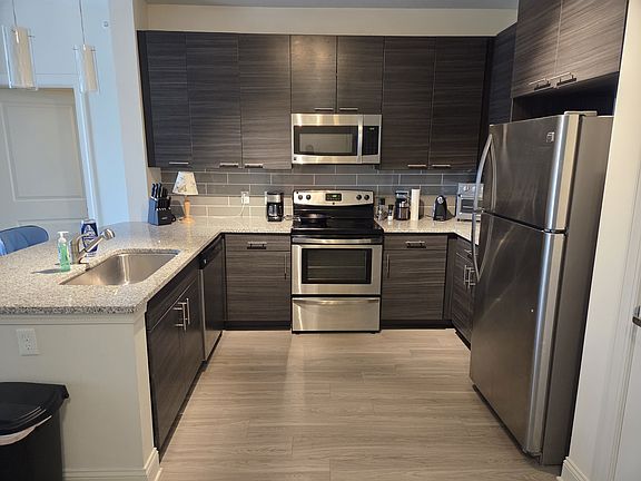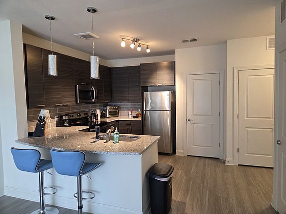 Modern 1 Bedroom/1 Bath, 4th floor apartment. Kitchen includes stainless steel appliances, granite counter tops, garbage disposal, bar seating, and pantry. Washer and Dryer are in-unit. Spacious living area with walk out to private balcony. Spacious bathroom and large walk in closet. Property amenities include resort-style pool, lounge/game room, and fitness center. Pet friendly. Unfurnished.