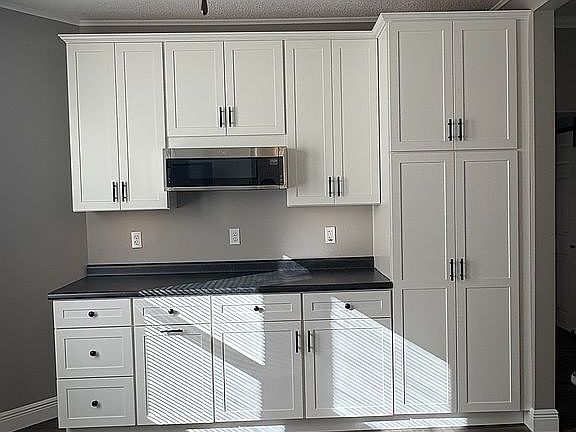 Gas fireplaceNewly added landscapingAsphalt drivewaySolid wood kitchen cabinetsBright eat in kitchenNewly renovated front porchCeiling fan