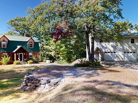 A large detached garage includes an upper level with potential for additional living space, studio, or guest quarters. Enjoy nearby fishing with a stream close to the property, and explore the natural beauty of the surrounding area—just 4 miles to Pleasant Mountain Ski Area, 45 minutes to Sunday River, and minutes from Moose Pond, Kezar Pond, and hiking in the White Mountain National Forest.