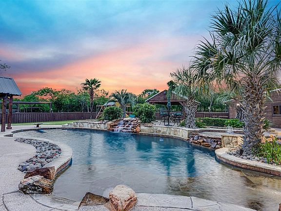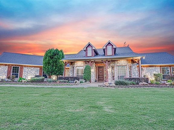 Horse and Livestock friendly, located in Maypearl on 18 glorious acres, tucked off the beaten path you have just found paradise! The 1,500 mancave is fit for a KING with full bar, dance floor, bathroom, karaoke booth and extra storage for the party goods. Walk on over to the HUGE shop with plenty of covered parking for all your toys, watch the cows and horses on the bank of one of the ponds, have your friends bring their RV over to camp in the full hook up area, let the kids play on the play ground while the parents enjoy a cool beverage around the breathtaking pool. Two master suites, a maste