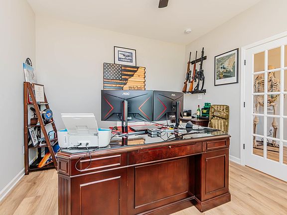 Welcome to 3,151 square feet of inviting living space! This beautiful home offers a formal dining room, a versatile flex space, a spacious great room, and a large kitchen with a cozy breakfast area. Upstairs, you'll find a generous media room, five bedrooms, and three full baths, plus a two-car garage and a signature GameDay Patio - perfect for entertaining or relaxing by the fire. Step through the inviting entry foyer into the formal dining room, beautifully detailed for special gatherings. The flex space is ideal for a home office or playroom, while the great room features a wood-burning fireplace and flows seamlessly into the well-appointed kitchen. The kitchen showcases stylish cabinetry, gorgeous quartz countertops, a tiled herringbone backsplash, stainless steel appliances, and a spacious island that connects to the bright breakfast area-perfect for casual meals. A guest bedroom and full bath on the main level offer convenience and privacy. The owner's entry includes a signature drop zone, an ideal family catch-all. Upstairs, enjoy the media room, perfect for movie nights, and a luxurious owner's suite with a sitting area and tray ceiling. The owner's bath features a garden tub, tiled shower, dual vanities, and a walk-in closet. Additional bedrooms are generously sized with great natural light, while the upstairs laundry and central hall bath add everyday convenience. Enjoy hardwood flooring throughout the main living areas and the GameDay Patio with wood-burning fireplace-the perfect spot to unwind and enjoy crisp fall evenings!