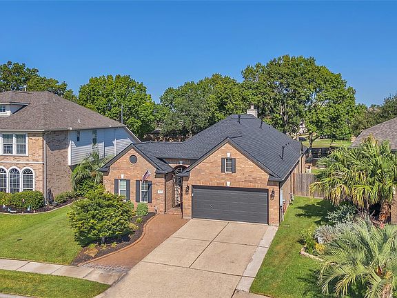 Welcome to this beautifully crafted four-bedroom, three-bath home! Behind the gated entry, you'll find a charming one-bedroom guest house complete with it's own private bathroom-ideal for visitors or multi-generational living. The main house is well laid out, featuring three spacious bedrooms and two full baths. With both formal living and dining rooms, this home is perfect for entertaining. The well laid out kitchen overlooks the cozy family room and fireplace, creating a warm and inviting space. The primary suite offers a private retreat, including direct access to the beautifully maintained backyard, complete with hot tub, koi pond, and mature trees. The home comes with an RYOBI 6500 Watt generator with 75 hours of life, refrigerator, and washer/dryer. Recent updates include, roof (2024), exterior house repainted, primary shower updated in 2025, and front door refinished. Don't miss out on this exceptional home located just minutes to restaurants and Kemah Boardwalk.