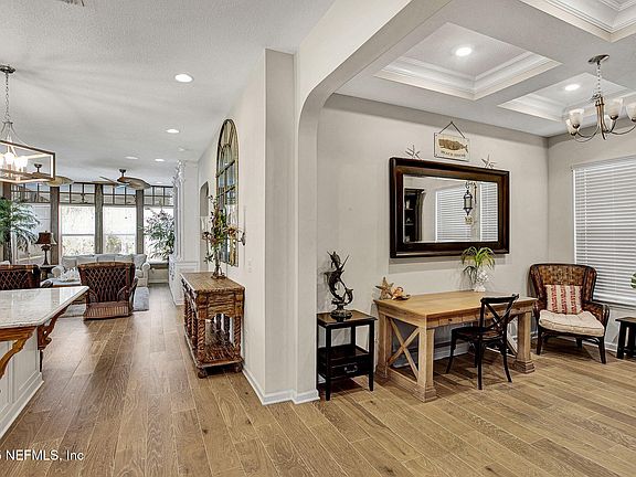 NOCATEE. This is truly a UNIQUE home in a 196 home over 55 community. BEAUTIFULLY set on one of Artisan Lake's most tranquil and private preserve lots directly across from the Clubhouse. Come experience the spacious open layout of this 3 bed 3 bath 2 car garage home with a study/dining room. This 2,547 sq ft Laurent model home boasts 10' ceilings and a soaring 2 story foyer. This home features over six figures in upgrades; beautiful blonde hardwood floors, double stacked white kitchen cabinets, under counter and cabinet lighting, marble back splash, quartz counter tops, stainless steel appliances and farmhouse sink, nearly a10' Island, walk in pantry, gas stove. Designer furnishings negotiable. Could be sold furnished. Custom built-ins and an abundance of closets provide ample storage. The positioning of the extended, hard roofed Lanai allows for lots of sunlight, indoor-outdoor living, unobstructed garden views of a private lush oasis from the living room and primary bedroom. ... Yards in this development are maintained by the HOA. An upstairs that is spacious with a bedroom with an amazing view, closets, full bath, family room, and 4 built in bunk beds which means there is plenty of room for visiting family and friends! Be on the lookout for the hidden craft closet! The tankless hot water heater means you never have to worry about running out of hot water. Located straight across the street from Artisan Lakes Clubhouse, you will enjoy the swimming pool, cabanas, Jacuzzi, pickleball courts, Bocce ball, gym/fitness center, gas fire pit area and are all just a few steps away! DON"T miss out on viewing this home.