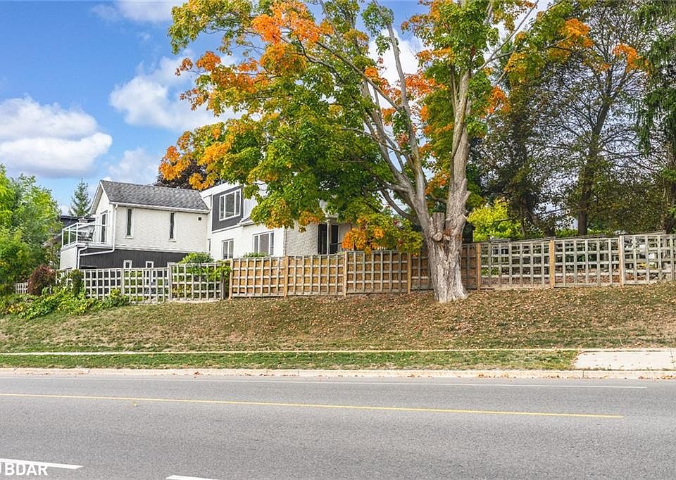 FULLY RENOVATED EAST END SHOWSTOPPER WITH A VERSATILE LAYOUT & FLEXIBLE R2 ZONING POSSIBILITIES! Set in Barrie’s prestigious East End, this fully renovated property pairs bold design with a layout that works beautifully for a variety of lifestyles. This zoning permits a wide range of uses, including a bed and breakfast, child care, home occupation, converted dwelling, or detached accessory dwelling, providing a variety of possibilities. With multiple levels, dual driveways, and a separate walkout, the layout is naturally designed for investors or professionals seeking a property that can adapt to a variety of uses. The main floor offers an open flow with exposed brick and beams, accent walls, and a fireplace, while the kitchen takes centre stage with a massive island, high-end black steel appliances, and walkouts to balconies showcasing views of Kempenfelt Bay. Upstairs, the primary retreat impresses with cathedral ceilings, oversized windows, a private balcony, a fireplace, and a dressing area with dual closets and ensuite laundry. A second bedroom also captures views of the bay, while a 4-piece bath highlights brass fixtures, a sleek vanity, and a tiled tub-shower combo with a glass enclosure. The lower levels add to the versatility with a rec room or bedroom featuring a fireplace and walkout to the driveway, complemented by a convenient wet bar just outside the room. The basement provides another bedroom paired with a modern 3-piece bath. Beautifully landscaped grounds with stone accents, greenery, and a shed complete the picture.