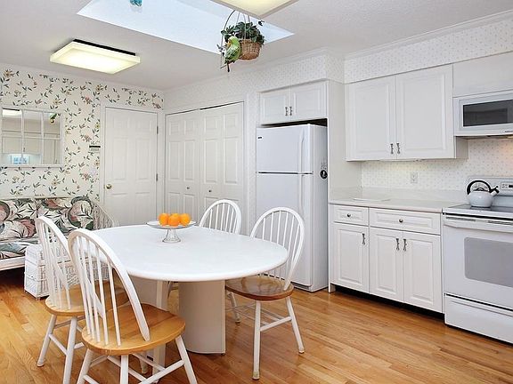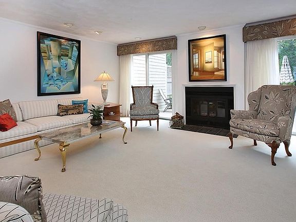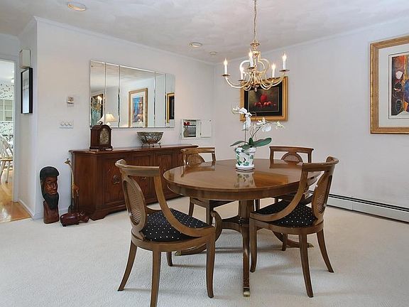 The Gables offering luxury living in the heart of Newton! Light and bright unit with approximately 2495 square feet of interior living space. Beautifully sited with views from the spacious Trex deck w/ access from the dining room/living room with a wood burning fireplace. The eat-in Kitchen with a skylight has hardwood flooring. Completing this level is a den/study, a laundry room, a powder room and 2 car garage with direct entry to the kitchen. The second floor features a master bedroom suite w/2 walk-in closets as well as an additional closet. There is also a wood burning fireplace and a sitting area. The large master bathroom has been updated and has a whirlpool tub and a shower as well as double sinks and a granite countertop.The second bedroom has an ensuite bathroom. The lower level has a media room, an office with a closet and a full bathroom. There is a 1 year old Buderous heating system. The Gables, beautifully landscaped has a clubhouse, tennis courts and an inground pool.