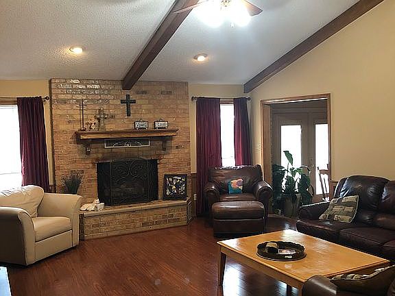 This 3 bedroom 2 bathroom 2 car garage home with 2262 square feet is located on a spacious 1.3 acre lot. Built in 1993, it has Central heat and air. The 1st bedroom has a large bay window. The 2nd Bedroom is large enough for a King Size bed, Dressers, and nice closet. The Master Bedroom is large enough to have a King Size Bed, Dresser, Couch and Chest, 1 small closet. The Master Bath has double sinks, a lot of storage space, a walk in closet and shower/bathtub. There is a nice Home Office, with built in book shelves. The laundry room is spacious, the kitchen has nice quartz counter top and plenty of cabinet space for storage. The counter sits 4 people easily. The Dining room is adjacent with a nice bay windows. Large Den room with 10 ft ceilings and a sunroom that looks out to the pool. The hallway bathroom has double sinks. The heat, hot water, stove, and gas log fireplace are natural gas, and the A/C is electric. There is an inground 18x36 pool with a privacy fence and pergola. The Shop is divided into 3 sections: a 1 car garage, a play room and a section for your lawn mower and tools. A small fenced in area is adjacent to the shop. The Front Yard has inground sprinkler and uses well water.