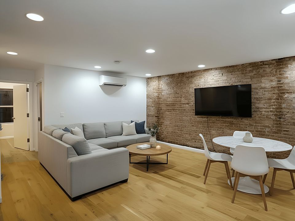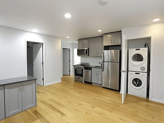 Welcome to Unit 4R at 425 East 12th Street a renovated 4-bedroom, 2-bathroom apartment in the heart of the East Village. This sun-drenched, floor-through home features four true bedrooms, each with its own window and closet, making it ideal for roommates, families, or anyone needing extra space. The open kitchen is outfitted with stainless steel appliances and modern cabinetry, flowing seamlessly into the common living area. Both bathrooms are tastefully updated with sleek tile and fixtures, and the unit includes a rare in-unit washer and dryer for added convenience. Hardwood floors and high ceilings run throughout, enhancing the home's bright and airy feel. Located just three flights up in a well-maintained pre-war walk-up building, 425 E 12th St sits on a quiet, tree-lined block between 1st Avenue and Avenue A moments from Tompkins Square Park, NYU, Trader Joe's, and some of the city's best dining, coffee shops, and nightlife. Close to the L train and multiple bus lines, this home offers both charm and practicality in one of Manhattan's most vibrant neighborhoods