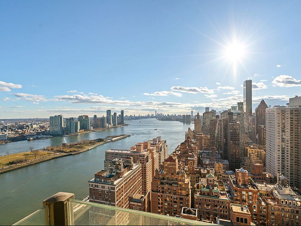 Enter through a welcoming central gallery that flows seamlessly into expansive entertaining areas. The grand South-facing living room and formal North-facing dining room feature beautiful new hardwood floors and open to a private South-facing balcony with East River and skyline views of the city, Queens and Brooklyn.