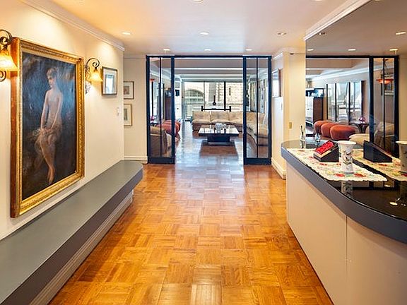 The Sovereign is one of the most renowned post war cooperatives. The elegant and impressive International Style lobby has soaring ceilings accented by the sparkle of hand blown 1950's Venini chandeliers, designed by the Italian Architect Carlo Scarpa. Enhancing the mid-century lobby are its original Rosewood panels, travertine marble floors and collection of curated paintings. Enjoy the lobby level gym, 24 hr. valet garage with Tesla charges and wonderful luxury service including on-site management. There is a bike room and private storage. The Board permits pets (up to two dogs). Pied-a-terre and purchase in a Trust and LLC's are permitted with Board Approval.