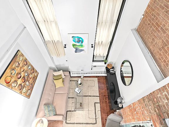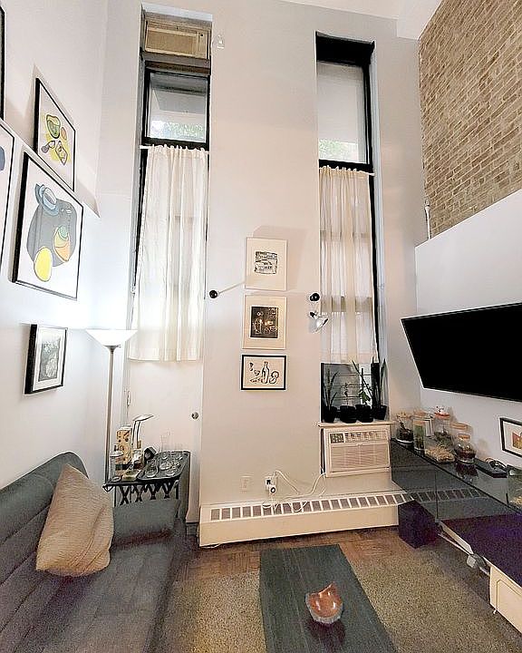 Elegance meets functionality in this open-concept living space, adorned with high ceilings, full height windows and walls of exposed brick. Thoughtful design is ever-present here, beginning with an open kitchen, replete with granite countertops and flooring, custom cabinetry, and stainless steel appliances (including a dishwasher), creating a seamless floor plan for both ease of use and entertaining. The living area provides the perfect respite with a set of straight stairs that lead you to the apartment's private sleeping loft. Yes, you can stand up fully in it! Once more, an adjoining en-suite marble bathroom employs the space with practicality in mind, and the added advantage of entrances on both the upper and lower levels enhances the apartment's overall convenience. Hardwood floors throughout along with through the wall air conditioning. This is unique NYC living at its finest!