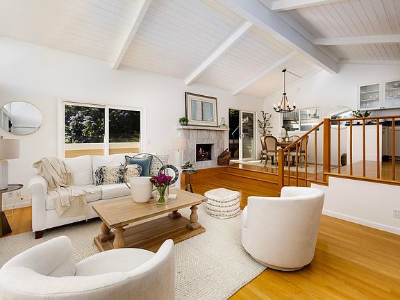 Nestled in the highly coveted Mesa neighborhood, this updated 3-bedroom, 3-bathroom residence offers a harmonious blend of contemporary sophistication and coastal allure. The living room, adorned with cathedral ceilings, exudes warmth and charm, enhanced by a fireplace that anchors the space. The open-concept layout seamlessly integrates the living, dining, and kitchen areas, infusing the home with an effortless elegance. Most interior spaces open to the outdoors to enjoy abundant sunshine, ocean views, and al fresco dining. The primary bedroom offers tranquility and features direct access to a spacious ocean view deck, ideal for morning coffee or evening relaxation. Its en-suite bathroom boasts a luxurious bathtub. The Primary en-suite, two additional bedrooms, and second bathroom are situated on the top level. The lower level presents a versatile family room, complete with a wet bar and a third bathroom, making it an ideal space for entertaining, unwinding, or even a dedicated office.