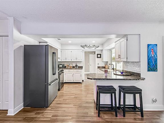 Located in a highly sought-after Southeast Winter Haven neighborhood, 425 Flagler offers exceptional curb appeal & spacious living on an oversized 0.38-acre lot shaded by mature Oak trees. This well-maintained home features a welcoming covered front porch, a screen-enclosed pool/ lanai with a built-in bar—perfect for entertaining. The spacious backyard is fully enclosed with a PVC privacy fence & includes two additional brick-paved patios for outdoor enjoyment. Inside, the home boasts laminate flooring & offers separate living, dining & family rooms. Sliding glass doors from the dining room, family room & master suite provide direct access to the pool area. The updated kitchen has wood cabinetry, Bosch appliances, a closet pantry, breakfast bar & a pass-through window to the lanai. The master suite includes a walk-in closet, walk-in shower, and pool access. The second bedroom also features a walk-in closet, while the third bedroom is accented with chair railing. The guest bathroom is upgraded with Granite countertops and a Jacuzzi tub. Additional highlights include; Attached two-car garage, impact glass windows & doors, screen enclosure (2022), complete re-plumbed (2021), sealed duct work (2023), R30 insulation for improved energy efficiency. Roof is Owen’s Corning Architectural Lifetime shingles with deck defense underlayment with a 30 year warranty. Recent roof inspection states roof has additional 10-12 years life. A/C has been well maintained and serviced every 6 months. This home combines comfort, style, & thoughtful updates—ready for its next owner to enjoy.