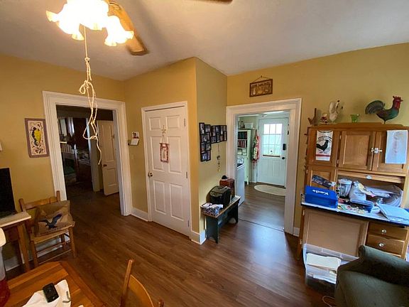 Small Town Charm! This home has tons of character from its period trim and molding to its dual stairs cases. The first floor of the home boasts a kitchen with a laundry area, right off of the formal dining room with hardwood floors and gas wall heater for cool mornings, full bathroom off the hallway leading towards the living room with beautiful original hardwood floors, off hand is the primary bedroom with its own full bathroom and double closet. Upstairsyou'llfind two great sized bedrooms ideal for kids or guests. Outside you'll love the detached garage for projects and the lean to be ready to host and grill during the pretty weather. There is another out building for overflow storage, and you get it all on a spacious corner lot! Call today to make this amazing home yours! Listed to sell at $175,000