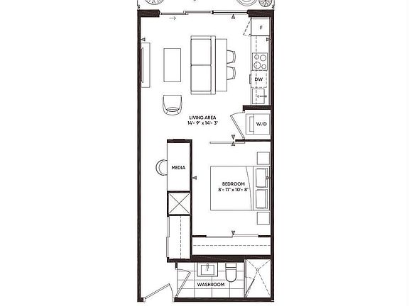 Welcome to Canary House in the Distillery District. This bright 1 Bedroom + Media, 1 Bathroom suite features an open-concept layout with floor-to-ceiling windows, a walk-out balcony, and a modern kitchen with a centre island. The primary bedroom offers a large mirrored closet. Residents enjoy premium amenities including a fitness studio, karaoke/theatre, library, communal kitchen, pet wash, rooftop patio with BBQs, and visitor parking. Right across the building from the Cooper Koo Family YMCA, featuring top-tier fitness and community amenities. Steps to shops, restaurants, waterfront trails, Corktown Commons, and Cherry Beach, with convenient TTC service and quick connections to the DVP and Gardiner.