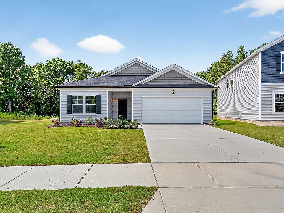Welcome to 425 Hallingsfield Way in Zebulon, NC - a charming new construction ranch in the desirable community of Barrington by Dream Finders Homes. Ideally located just a short drive from Raleigh, this home provides easy access to shopping, dining, entertainment, and outdoor recreation, while offering all the benefits of a brand-new home, including modern finishes, energy-efficient features, and a thoughtfully designed layout for comfortable living. This home features the popular Escape floor plan with 1,721 sq. ft. of living space, including 4 bedrooms, 2 baths, and a 2-car garage. A covered front porch welcomes you into the foyer with a coat closet, leading to a large family room with dining area and island kitchen with a spacious pantry - perfect for entertaining or everyday living. A separate laundry room adds convenience, and the covered rear porch provides space for outdoor enjoyment. The owner's suite is a private retreat with dual vanities, walk-in shower, water closet, linen closet, and a large walk-in closet. Two additional guest bedrooms share a full bath with linen closet, making this ranch ideal for families or guests.