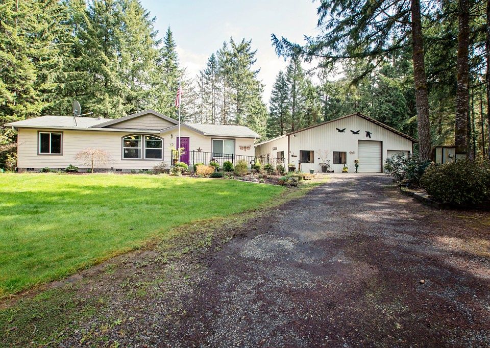 Paradise found! Late model 3 bed/2 bath home is surrounded by 4.86 acres of fully fenced, timber/pasture land. Great room concept, split bedroom plan, and a covered patio. Don't miss the fantastic 48x60 insulated shop w/ loft, kitchen, full bath, 2 large multi purpose rooms, concrete floor, 12 ft door & more. Perfect for your home based business or home for your toys. Easy navigation via a circular driveway, RV parking (inside and out) and plenty of space for all of your critters! Call today!