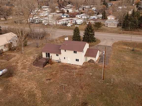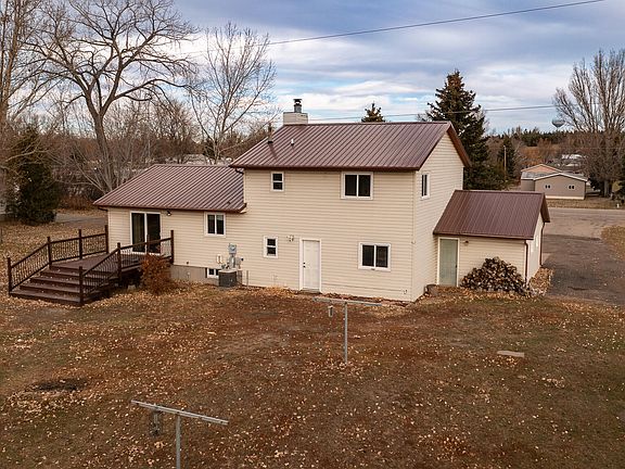 Enjoy small town living only 45 minutes from Bismarck! This home is move and ready and has many updates including new windows, steel roof, full kitchen remodel with knotty alder cabinets, quartz countertops, stainless-steel appliances, gas range, new flooring on the main level, beautiful tiled walk-in shower and a maintenance free deck just to name a few!  There are 4 bedrooms, 3 bathrooms, 2 living rooms one with a wood burning fireplace, tons of storage and a partially finished basement.  Enjoy your maintenance free deck with views of mature trees, a creek and park.  The lot is over an acre with an apple tree and raspberry bushes, shed and plenty of room to build a shop!