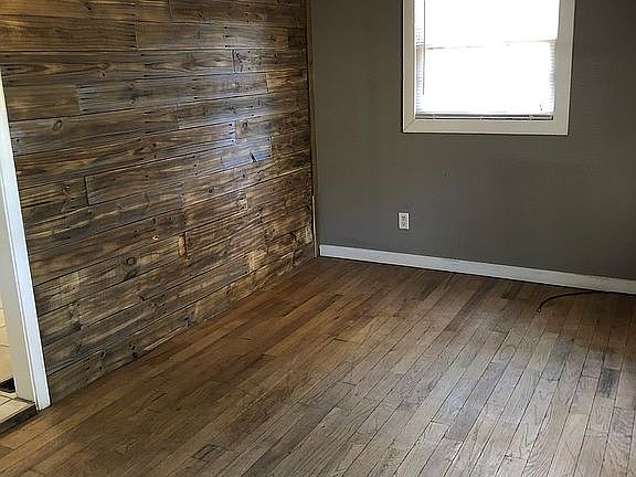 Partially fenced backyardShiplap accent wallsHardwood flooringCeramic tileEat-in kitchenGenerously sized laundry room