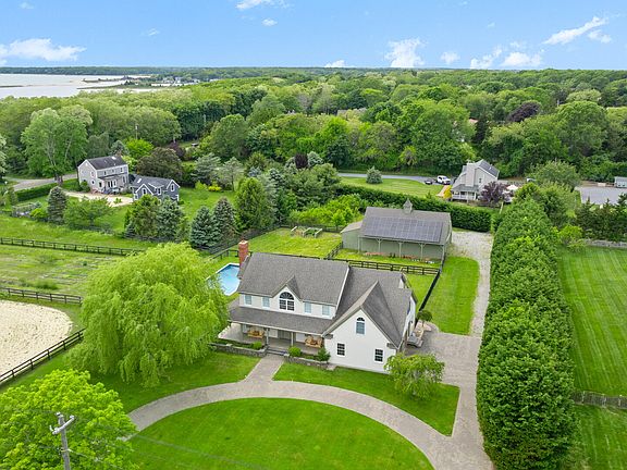 Nestled in the charming town of Southold, this contemporary horse farm estate offers a peaceful retreat for families and friends. With an open floor plan, five beautifully appointed bedrooms, and 3.5 bathrooms, this spacious home accommodates up to 10 guests comfortably. The property is bright and airy, featuring multiple sitting and dining areas that invite relaxation and connection. Whether you're seeking a tranquil getaway or a space to gather with loved ones, this estate provides the perfect setting to escape daily life. Surrounded by natural beauty and just minutes from local beaches and town amenities, it combines modern comfort with a touch of rustic charm.Step outside to discover an array of exterior amenities designed to help you unwind. The property ensures complete privacy, with an expansive deck outfitted with a dining table and multiple seating areasperfect for morning coffee or evening cocktails under the stars. The sprawling yard features a private heated pool for refreshing swims, a cozy fire pit for storytelling and s'mores, and a swing set for children to enjoy. An outdoor shower offers convenience after beach trips, while the gas BBQ invites al fresco dining experiences. With plenty of free parking, this estate ensures both convenience and luxury for every guest.From the moment you enter, this home enchants with its open layout and abundant natural light. Central air conditioning ensures year-round comfort, while high-speed WiFi keeps you connected. Flow effortlessly between the spacious living room, elegant dining room, and gourmet island kitchen. The kitchen is a chef's dream, boasting top-of-the-line appliances, a coffee maker, and ample counter space for culinary creations. A dedicated work-from-home space makes it easy to balance leisure with productivity. Throughout the home, large windows frame stunning views of the surrounding horse farm, creating a serene and picturesque backdrop.Each of the five bedrooms is a haven of comfort, featuring fresh linens and all the essentials you need for a restful stay. The primary suite boasts an en-suite bathroom with a spa-like ambiance, while the additional bedrooms and bathrooms are equally well-appointed to accommodate every guest's needs. Whether you're waking up to gentle morning light or unwinding after a day of exploring, these spaces ensure you feel right at home.Conveniently located near the towns of Cutchogue, Peconic, and Greenport, this property is your gateway to the best of the North Fork. Explore a variety of local wineries, farm stands, and fine restaurants, or immerse yourself in the region's rich culture with visits to art galleries and antique shops. From sandy beaches to charming boutiques, there's something for everyone just a short drive away.This Southold estate offers an unparalleled combination of luxury, privacy, and proximity to the vibrant offerings of the North Fork. Whether you're planning a family vacation, a getaway with friends, or a special celebration, this home is the perfect setting for unforgettable memories.