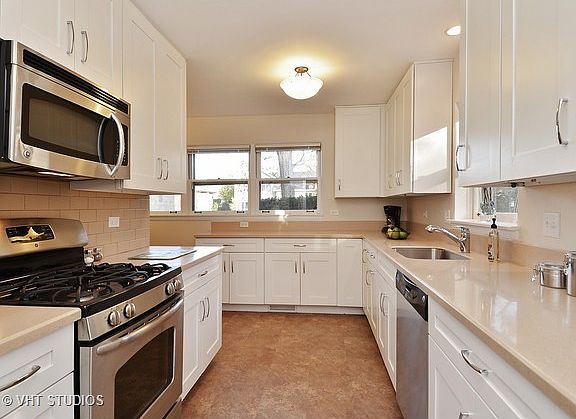 The light streaming through the windows of this quality built brick split-level is welcoming and warm. The floor plan is designed to optimize living space. Gleaming hardwood floors will be found in the living and dining rooms, all 4 bedrooms and hallway. A 2012 kitchen renovation offers white cabinets, plenty of counter space and stainless steel appliances. A generous eating area adjoins the kitchen. The large family room provides flexible space. Additional features include: master bath, abundance of closets and 2-car garage. Enjoy the generous size patio with seating wall. This offering, centrally located on a quiet block, is near schools, parks and easy access to transportation. Don''t miss!