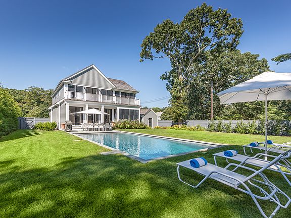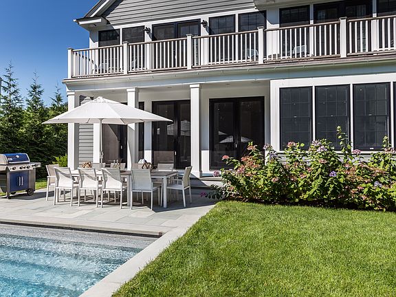 Nearly new construction in Sag Harbor Village presents as the ultimate summer paradise with 5 Bedrooms and 5.5 Baths in this beautifully appointed 4200 sq ft traditional home on .36 acres. The home is saturated with natural light with a wide open ground floor great room overlooking the pool and garden.A side entrance leads to a powder room and mudroom with a pantry closet. A ground-floor junior primary suite is also located on this level. Relaxation and slumber await on the second level, where the Primary Bedroom Suite includes a walk-in shower and a luxurious soaking tub. A full-length balcony offers scenic views of the inviting gunite pool with bluestone surround and a luscious lawn with flowering gardens. Two more spacious, en suite guest bedrooms are upstairs, a convenient laundry room, a fully finished lower level, a 5th bedroom and bathroom, a workout area, and an additional entertainment area to complete the home. An oversized detached garage is equipped with an electric car charger and holds a backup fridge for all your summer entertaining. Steps to the wonderful town park with tennis courts and playground for younger ones and a stone's throw down Captain's Row to Main Street shops and restaurants.