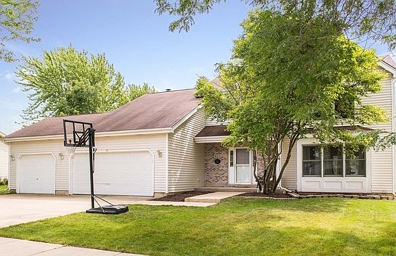 This move in ready home features 4 bedroom, 2.5 baths, a 3 car heated garage, first floor laundry, white trim throughout and partially finished basement. The kitchen features new appliances, back splash, island and eat in area. Family room showcases fireplace and vaulted ceiling with skylight, Head upstairs to the master bedroom boasting a walk in closet and master bath with Jetted tub. 3 more bedrooms and a full bath complete the upstairs. Back yard is fenced in and includes play set. Call today for a private viewing!
