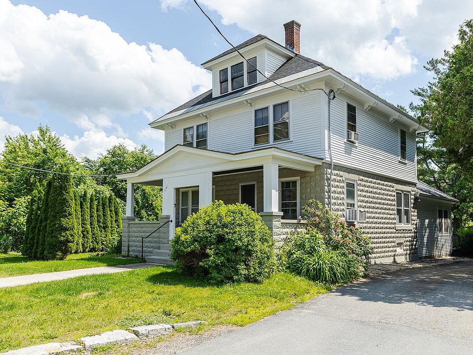 This classic 1922 Sears-type Colonial in Keene blends timeless character with modern updates and room to grow. Set on just under a full acre, the property offers privacy and space rarely found so close to downtown—plus potential for future development with city approval. Inside, you'll find 4 bedrooms, 2 bathrooms, and stunning original wood trim, built-ins, and hardwood floors. The spacious kitchen impresses with custom cabinetry, granite countertops, a tiled backsplash, and walk-in pantry. A large mudroom provides a functional entry point. The exterior has been recently painted, the back roof replaced, and the foundation reappointed—showing care and investment over time. Outside, enjoy a very spacious yard offering rare privacy or explore possible development opportunities with city approval. The detached barn-style 2-car garage provides charm and practical storage. Located near the rail trail and just minutes to shops, restaurants, and schools, this home offers classic curb appeal with everyday convenience.