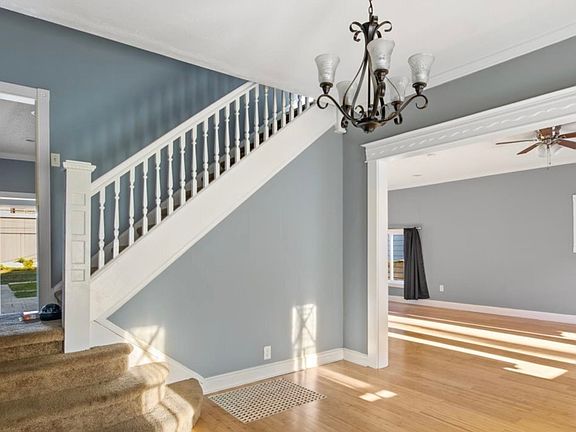 Covered front porchLiving and dining areaHuge back patioLarge entrance