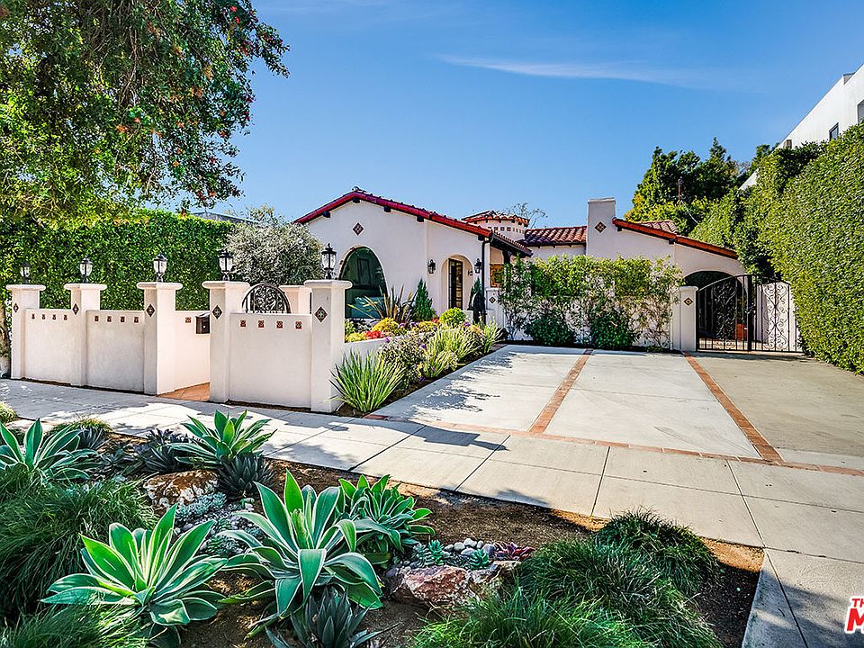 Spectacular Spanish home in hot Beverly Grove location! Beautifully updated 3 bedroom/4 bath character home with exquisite finishes and great flow! This light and bright stunner offers oversized living room with soaring ceilings and elegant arched front window, formal dining room, cooks kitchen with sunny breakfast area and custom designed bathrooms with intricate tile work. House also features well proportioned rooms, skylights, rich wood floors, doors & storage cabinets and a master suite with spa-like bath including double sided fireplace. French doors throughout open onto patios, backyard and outdoor dining area perfect for entertaining plus finished garage ideal for office, studio, gym. Conveniently located close to shops, restaurants and entertainment. Welcome home!