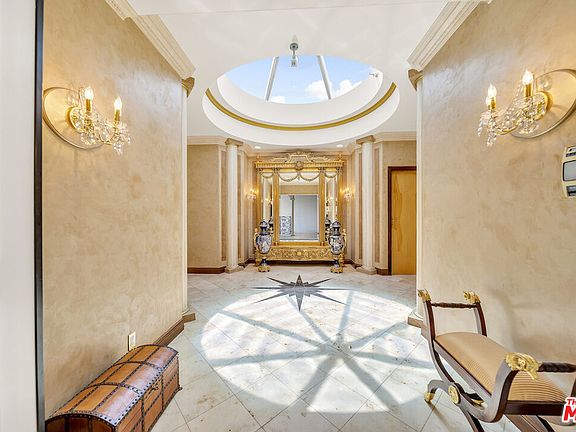 This regal penthouse in the iconic Le Faubourg building, which has been home to celebrities, offers over 5,300 sq ft of impressive unobstructed panoramic views from Beverly Hills to Downtown LA. This penthouse offers privacy and high security. 6 bedrooms, 7.5 baths, 4 fireplaces, a large chef's kitchen, formal living room with wet bar, formal dining room, library, separate service entrance and 3 dramatic pyramid skylights, flood the penthouse with natural light. The oversized primary suite includes two fireplaces, a sitting area, large walk in cedar closets and an opulent marble bath. French doors lead to multiple balconies, while a spiral staircase leads to the private rooftop, spanning over 700 sq ft, overlooking Beverly Hills and beyond. Full-service luxury begins when you pull into the driveway and are greeted by an onsite valet. Additional amenities include a large private storage room, 24-hour doormen, concierge, security, pool/spa and gym. Moments from Rodeo Drive, Sunset Blvd, and everything Beverly Hills has to offer. A rare opportunity to own this landmark Beverly Hills Penthouse in the world- famous 90210.