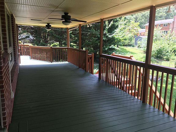 Nice brick ranch in very desirable Christiansburg neighborhood. Fenced yard and tall mature trees. Hardwood floors throughout and a gas fireplace in the living room. Large rear covered deck runs the length of the house and wraps behind garage. 20 x 10 shed and freestanding tree house convey.