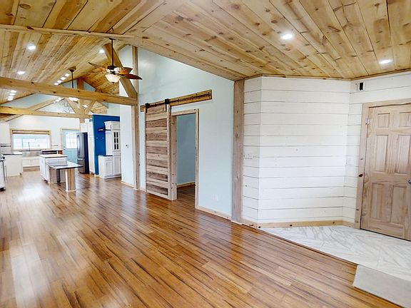 Charming Renovated Home in Quinter, KS – Move-In Ready!! Don’t miss this beautifully renovated 3-bed, 2.5-bath home updated in 2017. Featuring vaulted knotty pine ceilings with exposed beams, bamboo flooring, and an open-concept layout filled with natural light. The living area includes locally sourced shiplap walls from a 100-year-old barn and a cozy recessed sitting nook. The custom Thomasville kitchen offers modern appliances, concrete countertops with blue glass inlays, and a built-in dining table. The master suite boasts a sliding barn door, two closets, and a luxurious spa-like bath with walk-in shower, soaking tub, and double sinks. A stylish half bath with beach mural and a laundry area complete the main level. Downstairs, find two bedrooms with egress windows, a full bath, kitchenette and extra storage. Outdoor perks include a 16’x8’ greenhouse, 50’x20’ fenced garden, a lovely back patio, and multiple parking options: a 1-car garage\shop with loft + wood stove and AC, and a side carport perfect for an RV or boat. Reach out to schedule your showing of the must-see coastal theme home, call\text Trevyn Wolf at 785-422-5155.