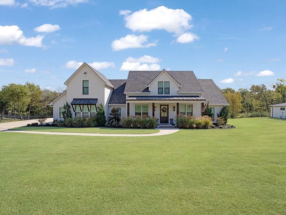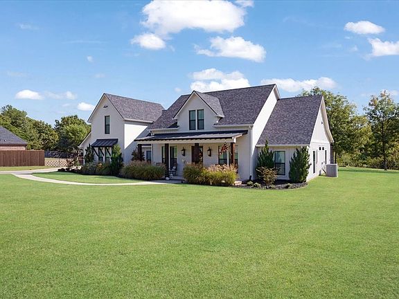 Absolutely stunning custom home on just over one acre! Conveniently located near FM 1417, TX-56, and Sherman High School, this immaculate property is ready for a new family to call it home. The sprawling front yard leads to a wide front porch with tasteful landscaping and tall wood columns. Walking inside you are greeted by high ceilings, open floor plan and large windows with tons of natural light. Dining room off the entrance has decorative lighting and coffered ceiling. Step into the living room with a centered brick fireplace, built-in shelving and tall transomed windows overlooking the backyard. The kitchen boasts a large butcher-block island with expansive bar seating and farm sink. Adjacent to the kitchen is your own butler's pantry with built-in cabinets and a spacious walk-in pantry. Primary bedroom features large en suite bathroom with separate vanities, separate shower and large walk-in closet that leads into the laundry room. The east wing of the house features three bedrooms - one with an ensuite full bath with large walk-in shower and walk-in closet, and the other two bedrooms adjacent to a hallway full bathroom with dual sinks and separate water closet room. In addition to two walk-in attic spaces with plenty of storage, the upstairs features a fifth bedroom with full ensuite bath, but the space could easily be used as an office, media room, play room, or exercise room. Flexible uses! Step out to the expansive back porch with seating area and outdoor counter prep area with sink and built-in cabinets. The backyard is spacious and home to several shady trees, while still having plenty of room to roam (or add a pool!) This beautiful property is tucked away on Ridgeview Rd while still being the perfect convenient location just minutes from downtown Sherman. Don't miss seeing this stunning home! Call your favorite Realtor and schedule your viewing today. *Please note that boundary lines in photos are approximate. Survey is available.*