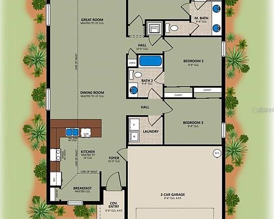 Expansive oversized islandUtility roomAnti-fog technologyVaulted ceilingCustomizable color settingsFlorida friendly landscaped yardSpacious walk-in closet