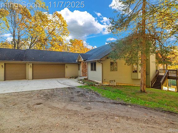 Open-House, Saturday, Nov. 8, 2025, 1 to 4, and Sunday, Nov. 9, 2025 from 1 to 3 p.m. Welcome home to your private oasis! Nestled on 5+ picturesque acres with a serene pond, this custom-built ranch delivers peaceful country living with high-end comfort. Offering 3 spacious bedrooms, 2 full baths, and a 3-car attached garage, this beautifully crafted home features a walkout lower level and a walkout deck overlooking stunning water views — perfect for morning coffee, evening sunsets, and year-round relaxation. Inside, enjoy an inviting open-concept layout, highlighted by a gorgeous stone wood-burning fireplace capable of heating the entire home. Natural light pours in through Andersen windows and skylights, creating a warm, bright atmosphere throughout. The walkout basement provides endless possibilities — finish to create additional living space, recreation room, workshop, or guest suite. A nature lover’s dream, this property backs to Camp Fire Southeast Michigan land, ensuring no future development and preserving your peaceful, wooded surroundings for years to come. Peaceful, private, and surrounded by nature, yet just minutes to modern conveniences — this property offers the lifestyle you've been dreaming of. Don’t miss your opportunity to call this slice of Michigan paradise home!
