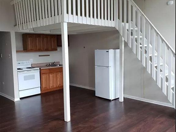 Unit features high ceilings, hardwood floors, and brand new windows with lots of natural sunlight. Sleeping area lofted above generous living space. Water and trash is included in rent, tenant pays electric and gas. Coin operated laundry on site in updated laundry room. Secure building with key-fob entry and monitored entry way. Parking available in side-lot for registered vehicles. 780 sq ft with