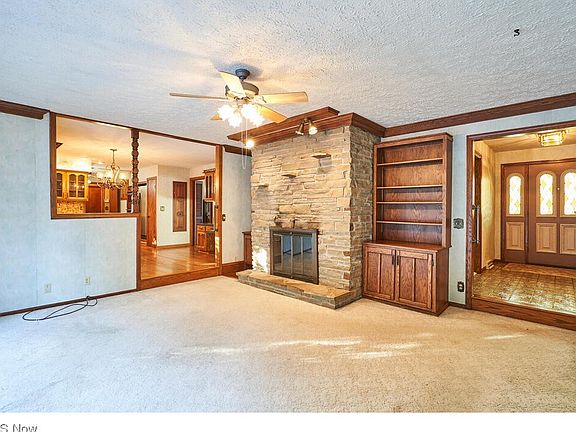Wonderful all brick ranch on approx 7 acres. One owner home! Over 2000 sq ft 3 bedrooms 3 baths. Tiled foyer welcomes you into this home. Large living room / dining room combined. There is sunken family room with a beautiful wood-burning fireplace with built ins on both sides. A slider from the family room leads to a brick patio with a gazebo. The family room flows into the kitchen which has hardwood floors and stainless steel double ovens. This is wonderful space for the cook in the family. Off the kitchen is the back hall with a full bath, the garage access , basement access and another door exits to the back yard with a deck and hot tub! The master bedroom also has hardwood floors and a private bath. There are 2 additional spacious bedrooms with great closet space. The basement is large and ready to finish, but there already is a 17 x9 room finished in the lower level with carpet. This home sits on 7.14 acres with a private backyard a 3 bay pole barn 30 x 30. Roof tear off in 2021! Copley Fairlawn Schools!!!