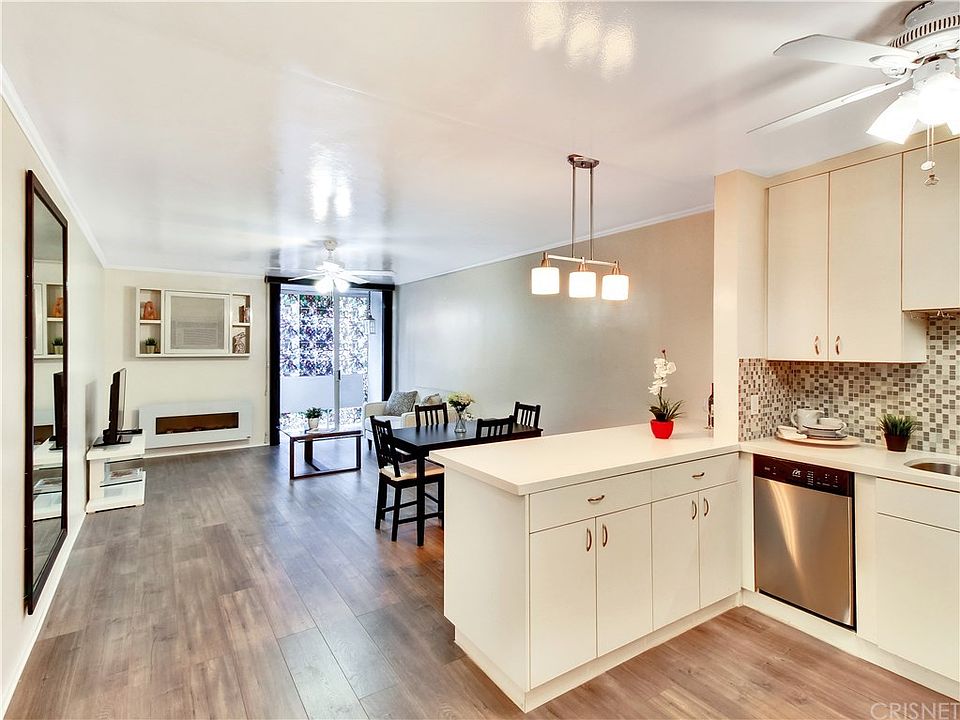 Looking for prime location, excellent condition, must have features and low HOA at a great price? This condo has it all! Superb Mid-Wilshire, Koreatown location just North of Wilshire Blvd, a stone's throw from popular restaurants & markets in a gentrifying & diverse neighborhood close to freeways, bus lines & the metro with easy access to Downtown LA and Hollywood. Spacious 660 Sq Ft living space offers an open floor plan perfect for entertaining. The remodeled kitchen with custom cabinetry & peninsula, quartz counters, beautiful backsplash, undermount sink, stainless-steel appliances & breakfast bar overlooks the dining area and huge living room with fireplace in a continuous flow leading to the private enclosed balcony with room for table & chairs to enjoy the sun. Newly painted large bedroom can fit a king size bed and features a double pane window, fireplace & mirrored closet doors. Hallway offers a ton of storage in the floor to ceiling closet with sliding doors & separate linen closet. Stylish bathroom features a double sink vanity, spacious tub & shower with "rain-head" showerhead with lighting for the perfect ambiance, custom tiled floors & matching light fixtures. Finally, your own in-unit laundry & deeded parking in the gated underground parking with elevator. Camera secured building with controlled access. Brand new laminate floors throughout. HOA dues include earthquake insurance. A great place to call home or the perfect investment in absolute move-in condition!